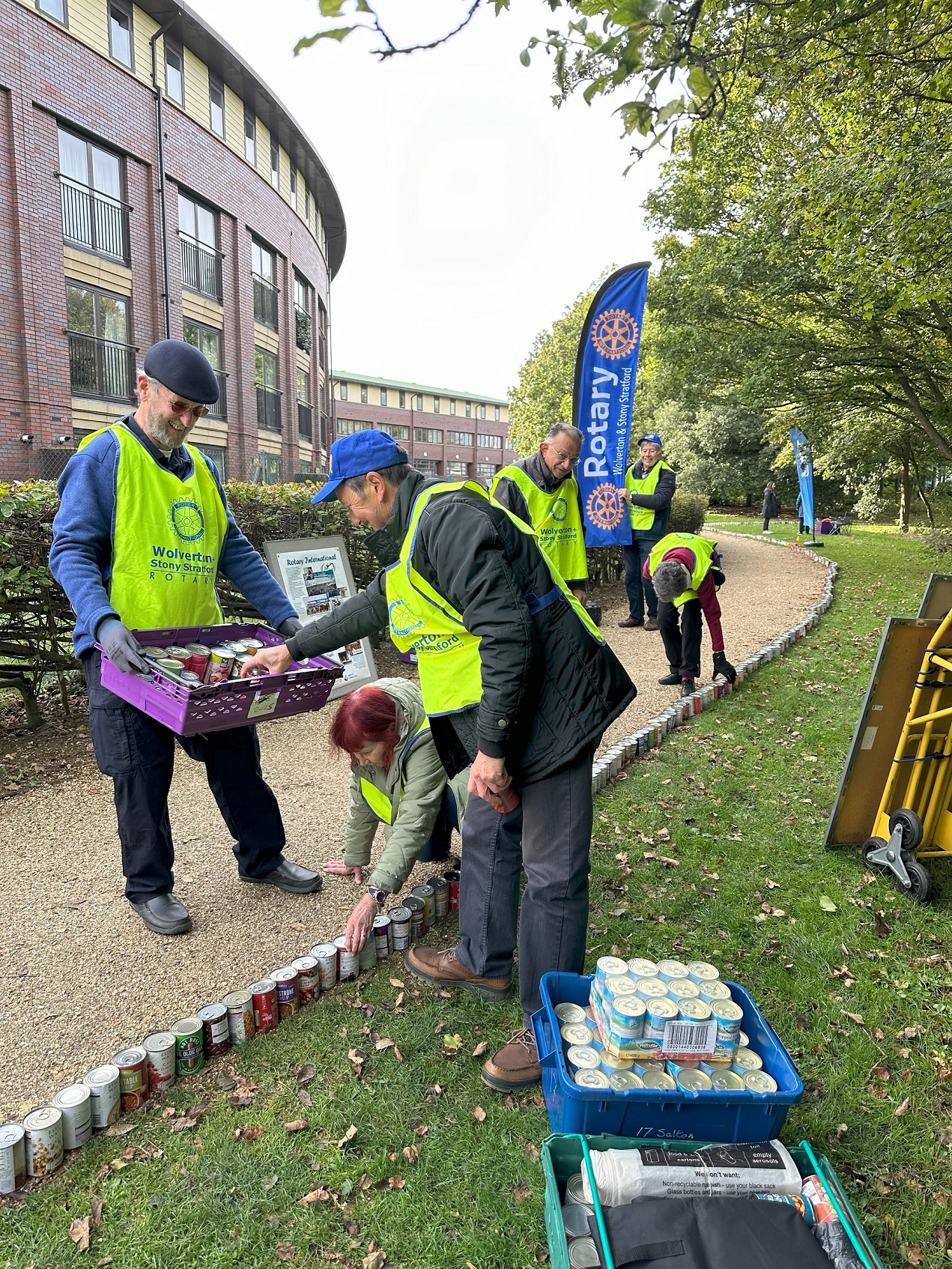 Wolverton & Stony Stratford Rotary Club was very pleased to take part in this challenge to support a very deserving cause. Each participating organisation signed up to collect a minimum of 350 cans and set these out in allocated 25 metre lines, forming a continuous single line of cans snaking all over Campbell Park. Our own club tally was 504 cans, well in excess of the minimum requirement, so we displayed the extra cans collected alongside our section of the line.