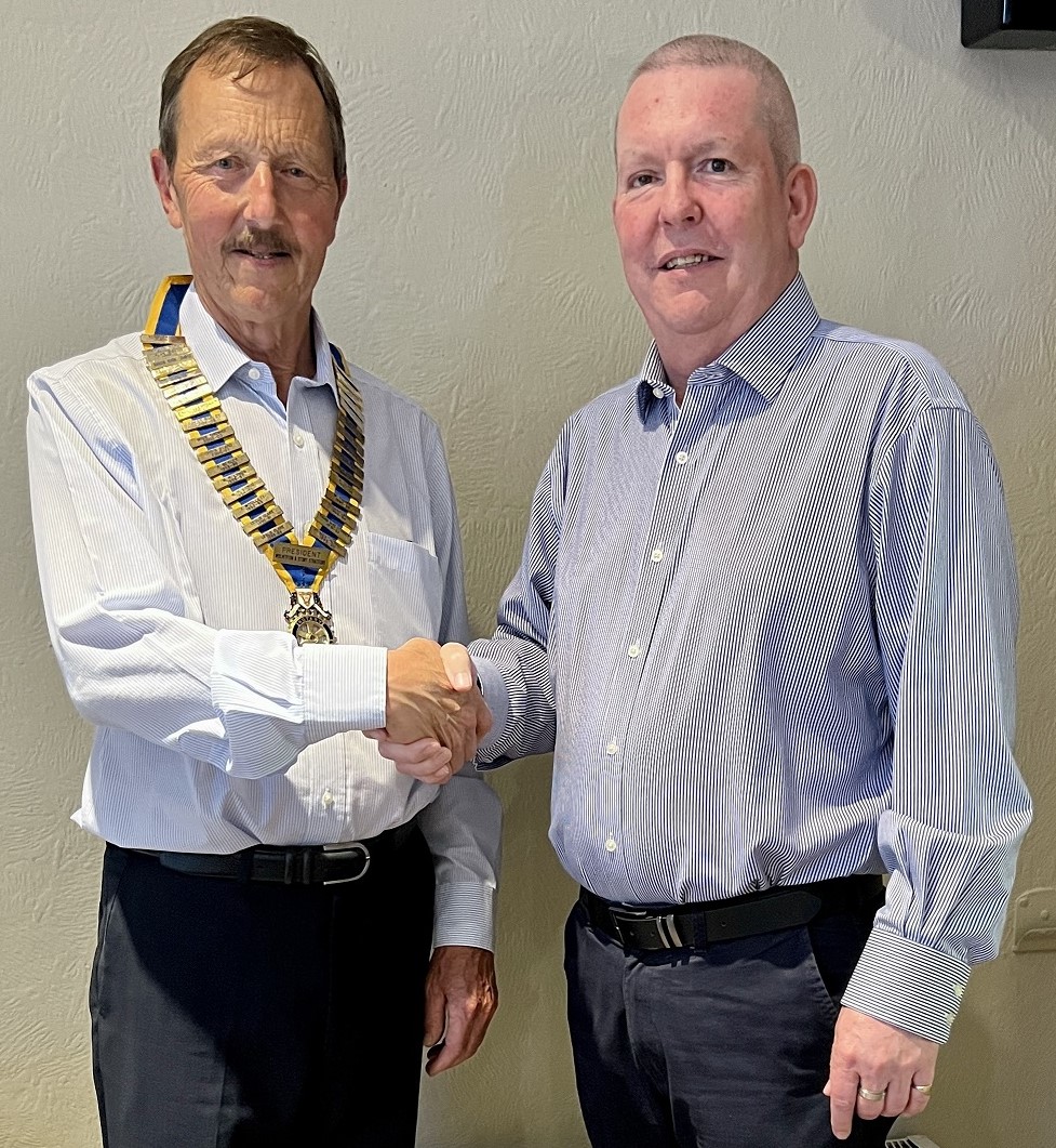 Pictured (left) is new Club President Chris Byard receiving the chain of office from retiring President Stuart Clarke.