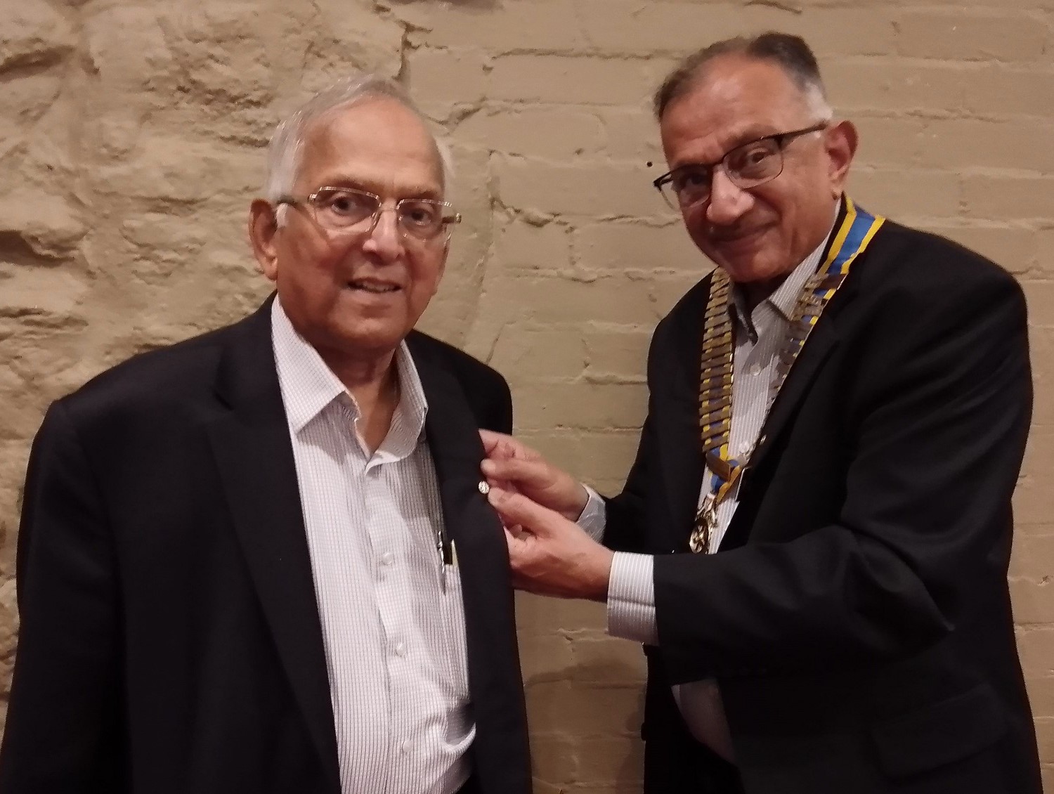 A warm welcome to Dr Satya Murthy who is the latest new member to join the club. Recently retired as a GP, Satya will be well known by many as their doctor at Wolverton Health Centre and for his long standing involvement in local health care. Pictured is Dr Murthy receiving his Rotary lapel pin from President Indra.