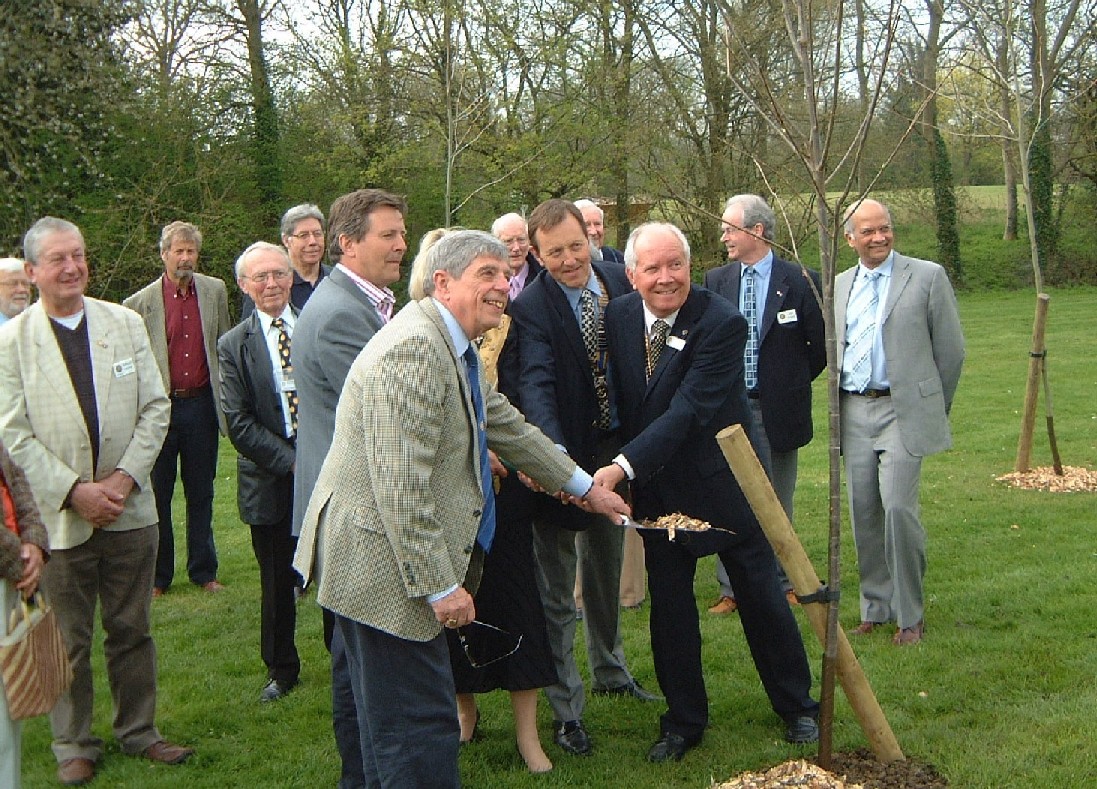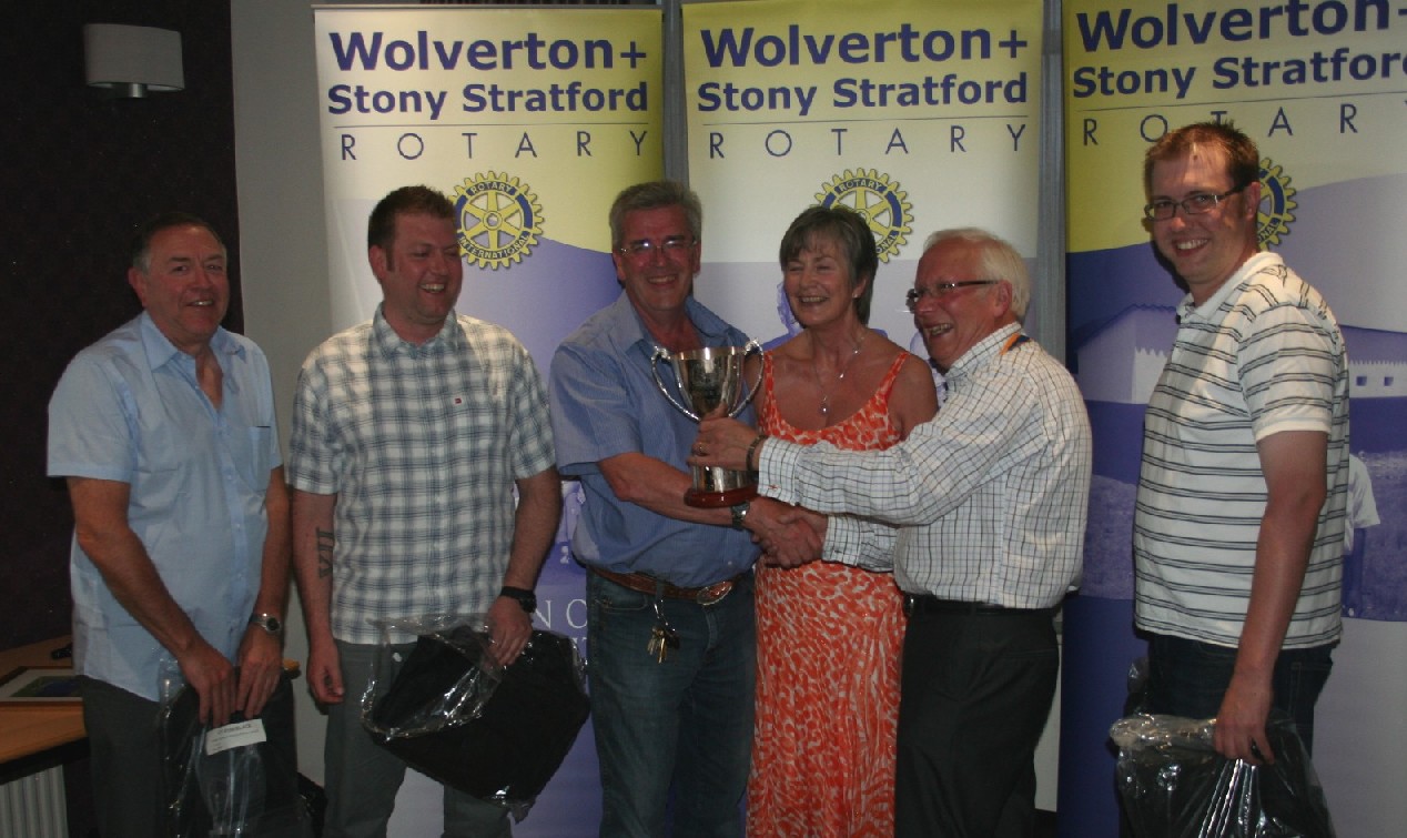 President Malcolm handing over the Roger Borley Memorial Cup to the winning team, watched by